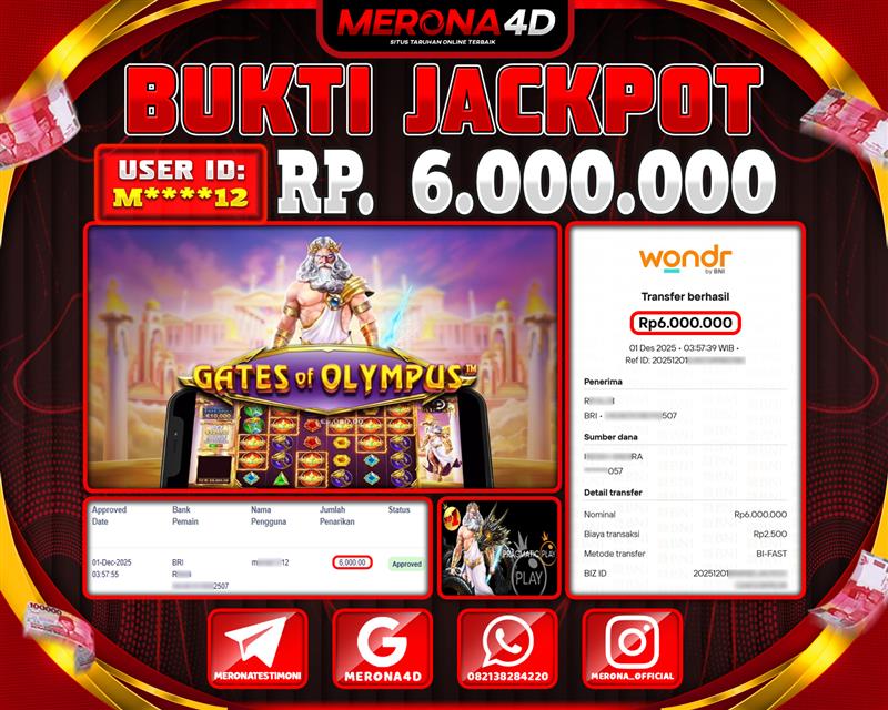 Selamat Kepada Member MERONA4D M*****12 Telah Jackpot Di GATES OF OLYMPUS