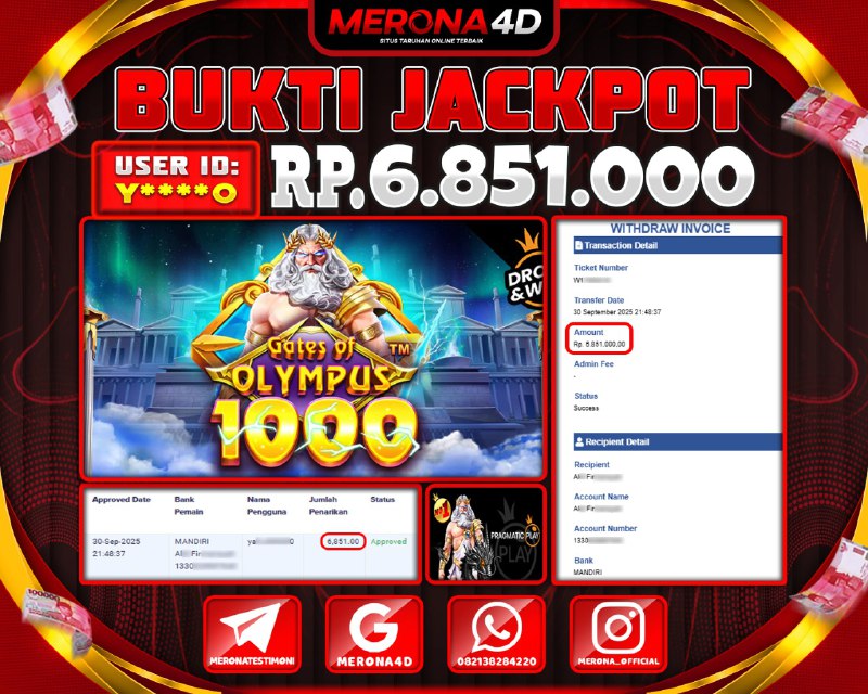 Selamat Kepada Member MERONA4D Yβ­‘οΏ½***οΏ½β­‘0 Telah Jackpot Di GATES OF OLYMPUS 1000