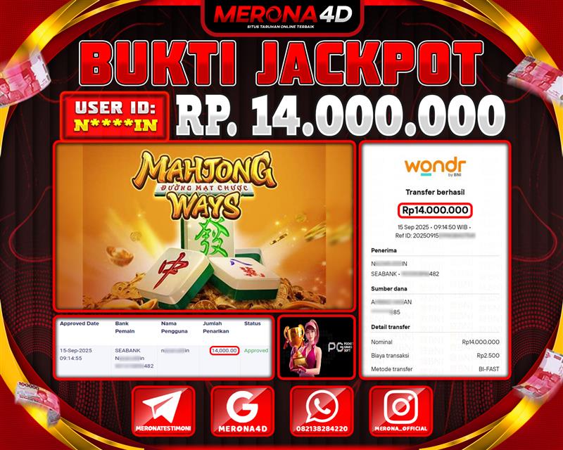 Selamat Kepada Member MERONA4D N******IN Telah Jackpot Di MAHJONG WAYS