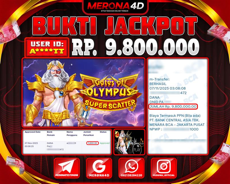 Selamat Kepada Member MERONA4D A*****TT Telah Jackpot Di GATES OF OLYMPUS SUPER SCATTER