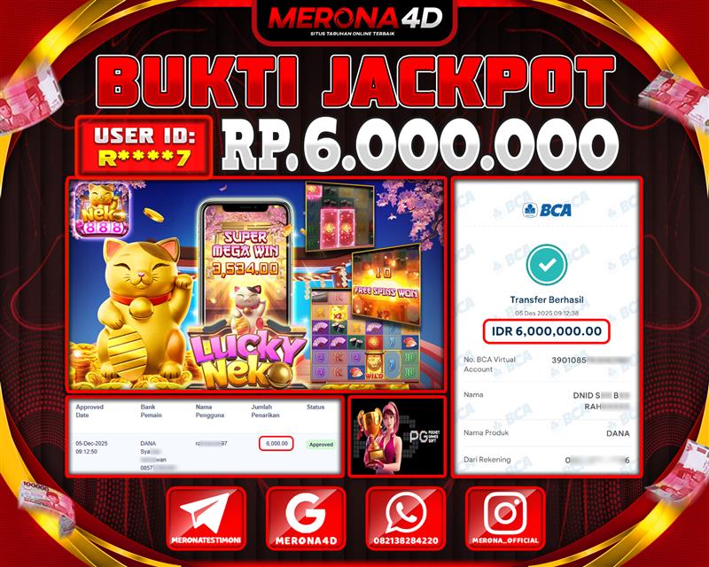 Selamat Kepada Member MERONA4D R*****7 Telah Jackpot Di LUCKY NEKO