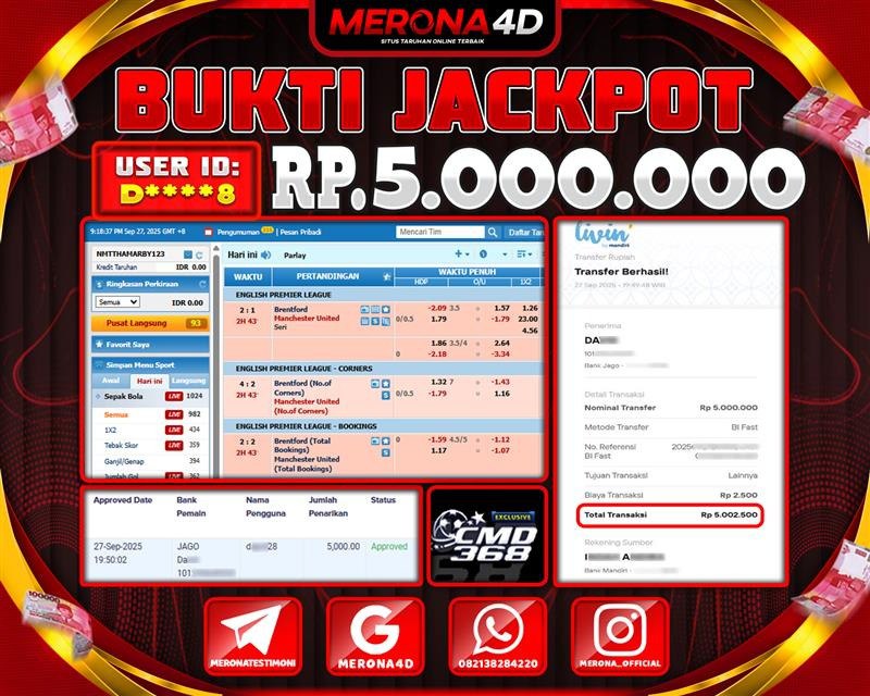 Selamat Kepada Member MERONA4D Dβ­‘οΏ½***οΏ½β­‘8 Telah Jackpot Di SPORTBOOK