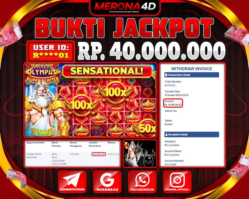 Selamat Kepada Member MERONA4D R*****01 Telah Jackpot Di GATES OF OLYMPUS SUPER SCATTER