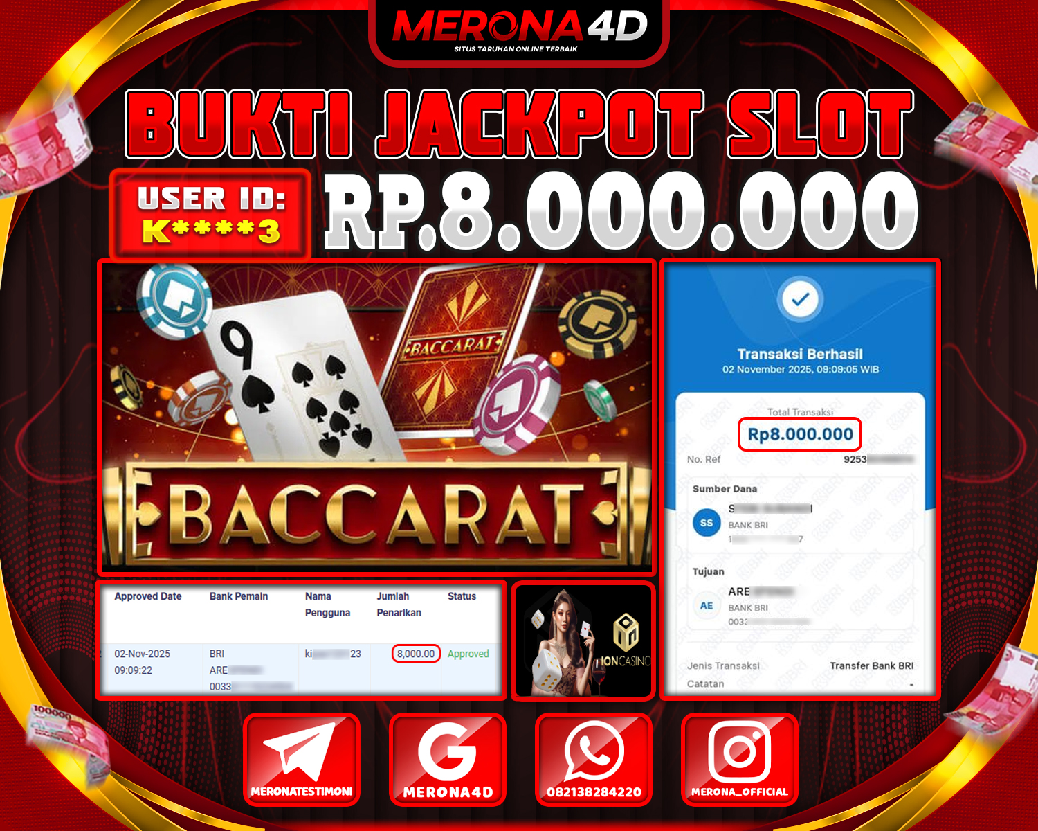 Selamat Kepada Member MERONA4D Kβ­‘οΏ½***οΏ½β­‘3 Telah Jackpot Di BACCARAT