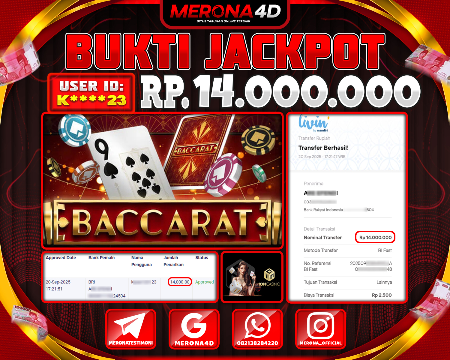 Selamat Kepada Member MERONA4D K*****3 Telah Jackpot Di BACCARAT
