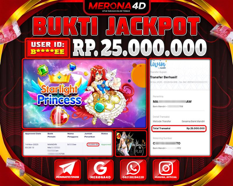 Selamat Kepada Member MERONA4D Bβ­‘οΏ½***οΏ½β­‘3 Telah Jackpot Di STARLIGHT PRINCESS 1000