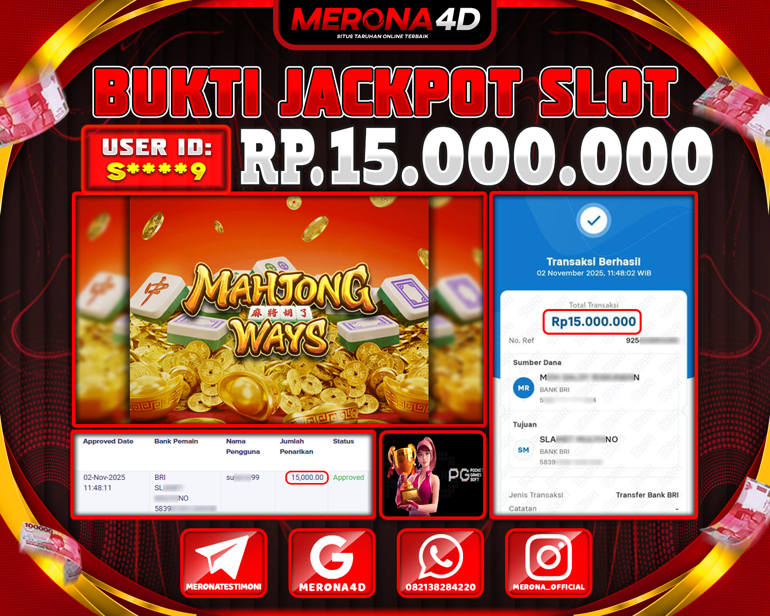 Selamat Kepada Member MERONA4D Sβ­‘οΏ½***οΏ½β­‘9 Telah Jackpot Di MAHJONG WAYS