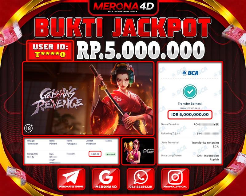 Selamat Kepada Member MERONA4D T*****0 Telah Jackpot Di GEISHA'S REVENGE