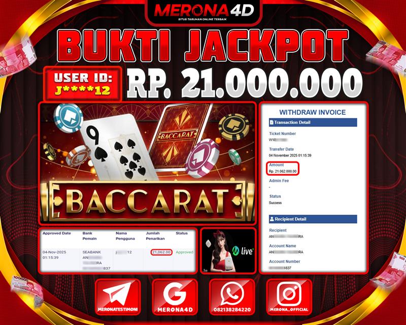 Selamat Kepada Member MERONA4D J*****12 Telah Jackpot Di BACCARAT