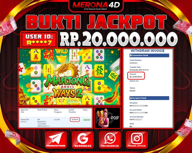 Selamat Kepada Member MERONA4D R******7 Telah Jackpot Di MAHJONG WAYS 2