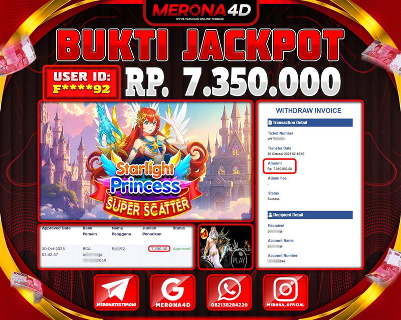 Selamat Kepada Member MERONA4D F*****92 Telah Jackpot Di STARLIGHT PRINCESS SUPER SCATTER